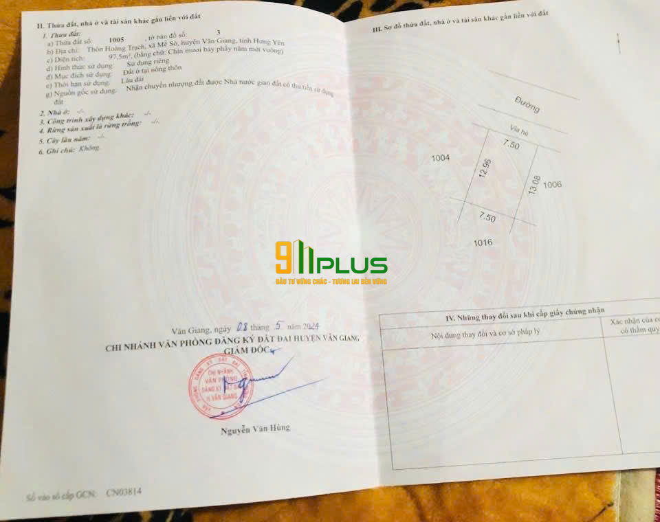 BÁN GẤP LÔ ĐẤT ĐẤU GIÁ 97,5M² – THÔN HOÀNG TRẠCH, MỄ SỞ, VĂN GIANG, HƯNG YÊN!
